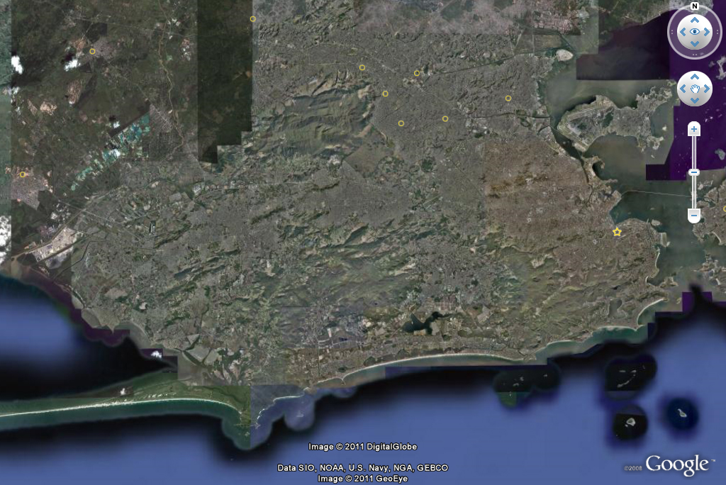 Vendo o mapa da cidade do Rio de Janeiro via satélite no Google Earth veremos que a conotação zona norte, zona sul, zona oeste do município nada tem haver com os pontos cardeais, pelo menos aquele que aprendemos na escola.Vejam nos mapas a locação dos cardeais em relação a divisão da cidade em zonas...